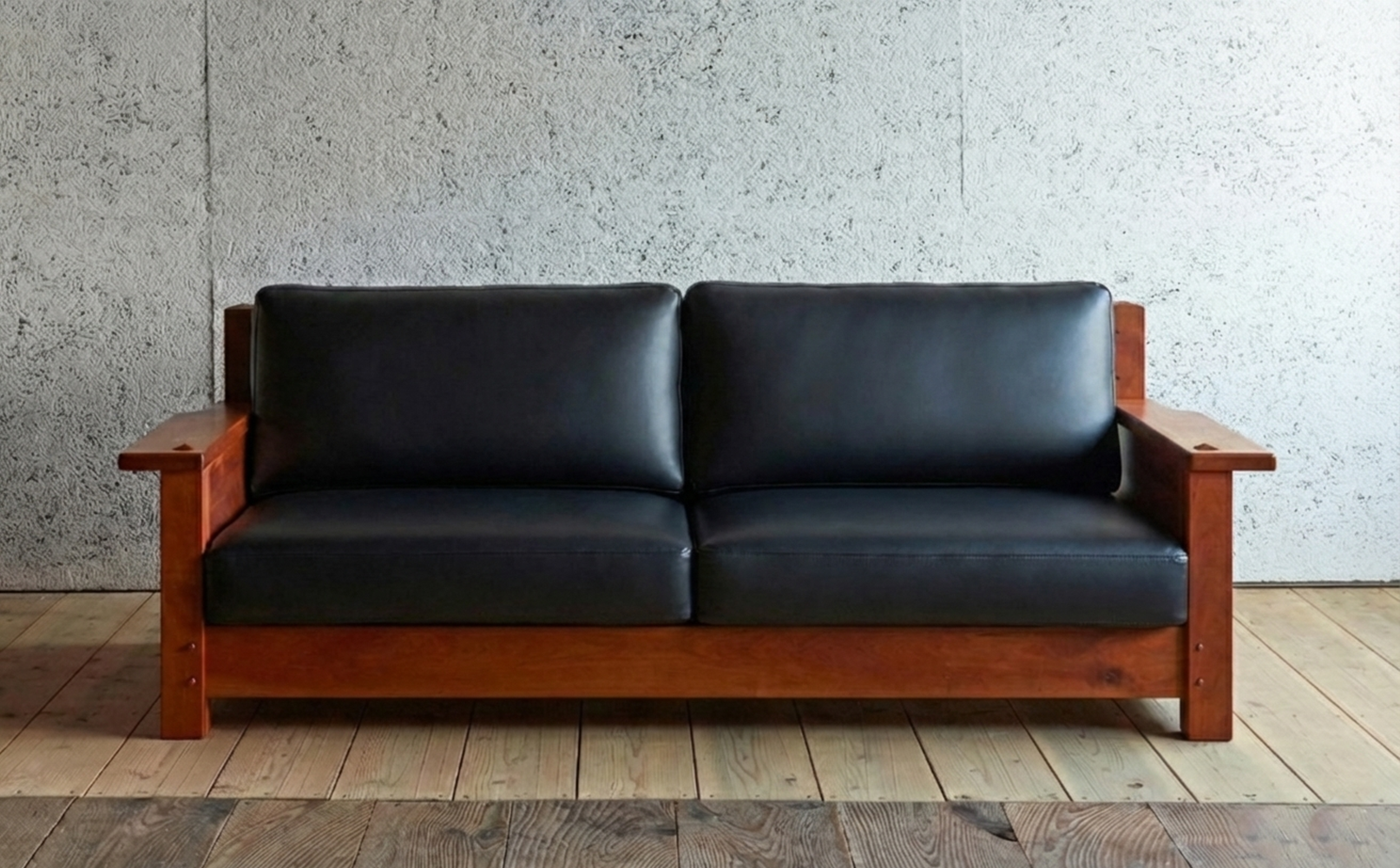 ボガートソファは、ウォールナットのキャラクターマーク(フシなど)材を使い、家具職人の豊かな感性で、表情豊かに味のある高品質なソファーに仕上げています。