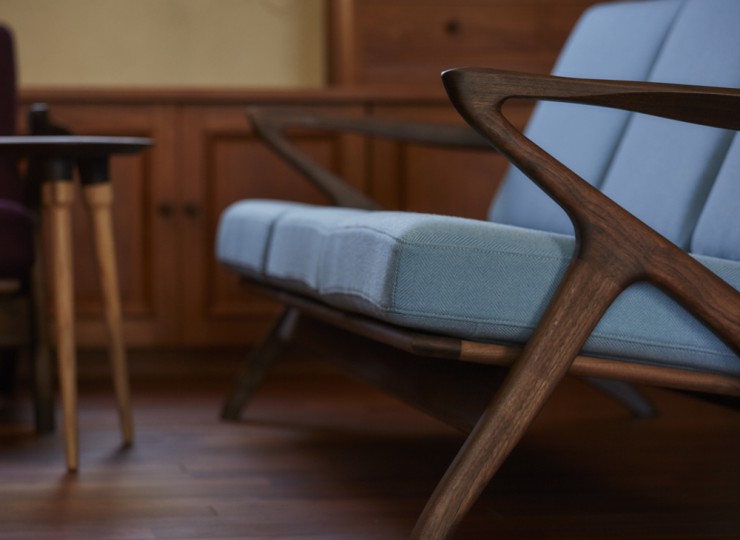 また、ヴィンテージ北欧家具の特徴である優美な形状は、職人の力量に裏打ちされた大川家具の製造技術で再現しています。