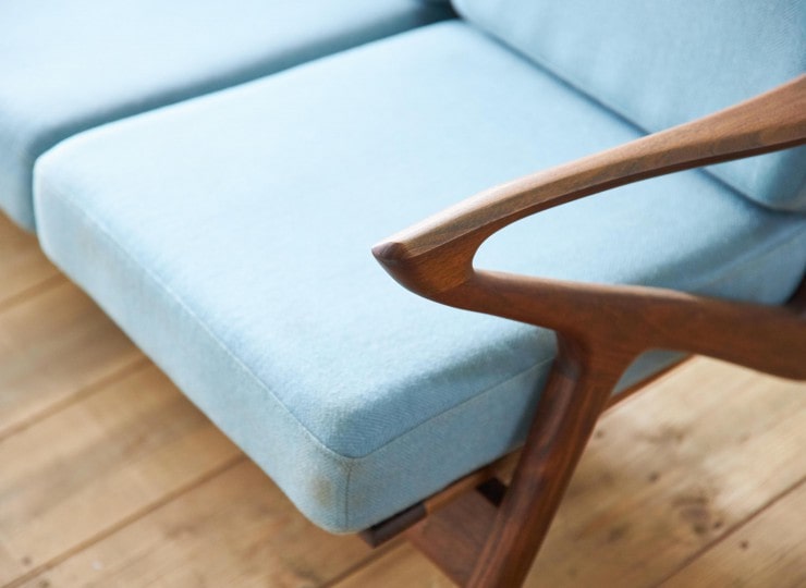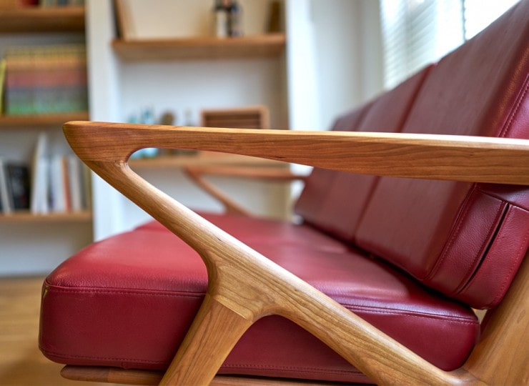 木の素材はウォールナット、ブラックチェリーの2種類。サイズは1人掛け、2人掛け、3人掛け。