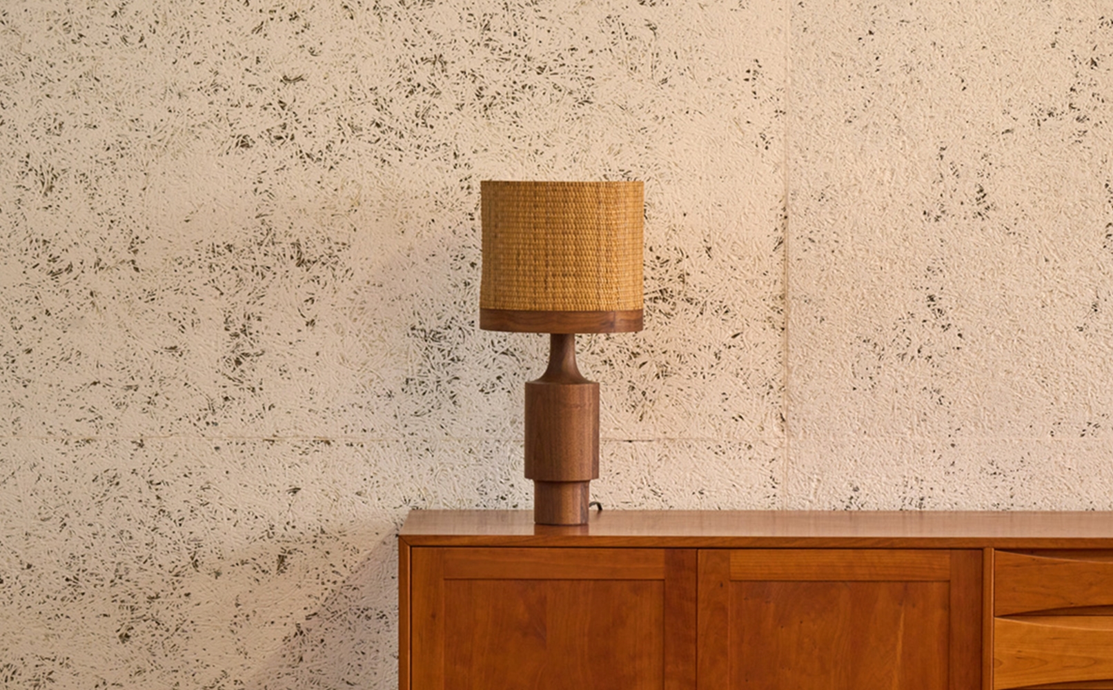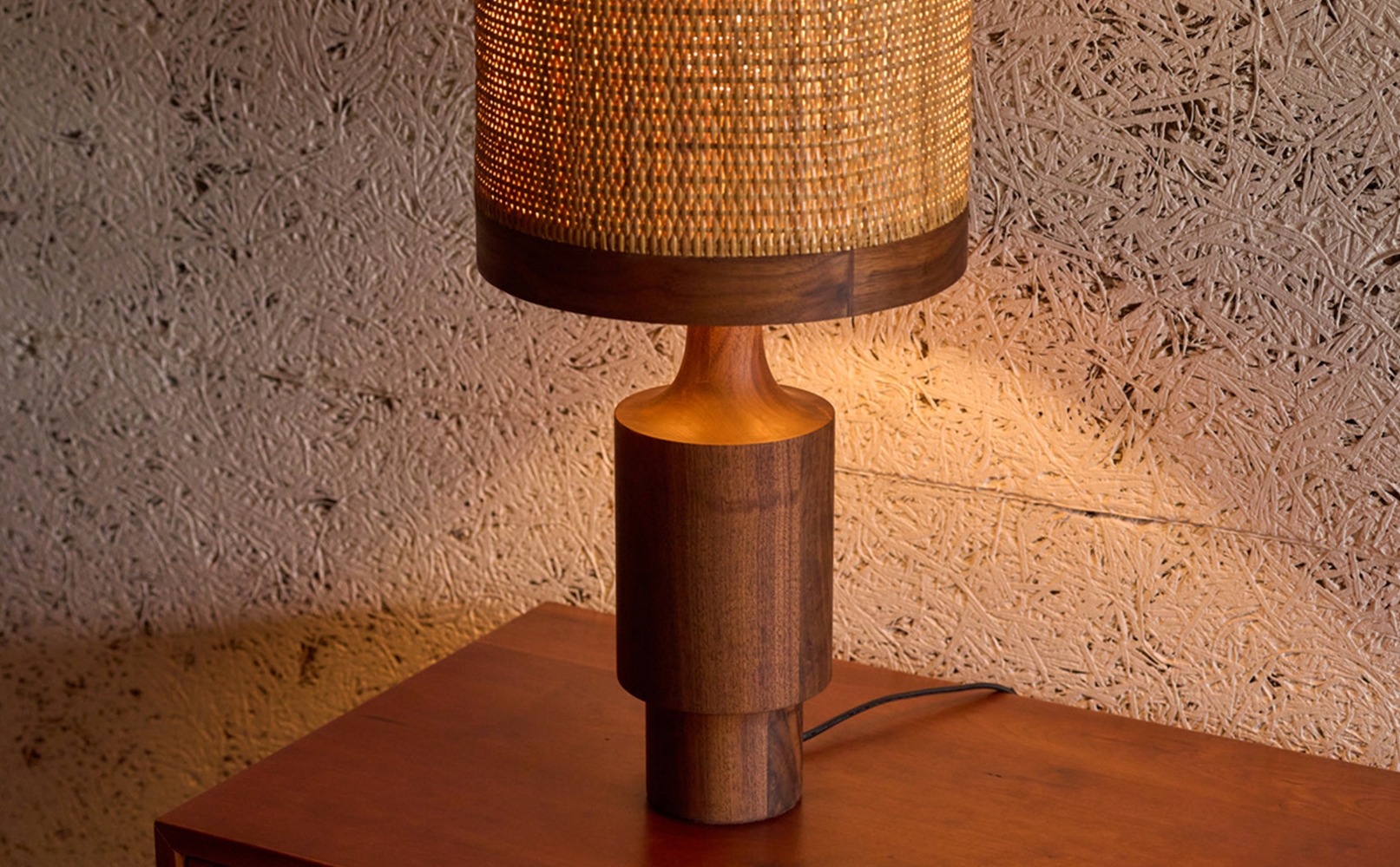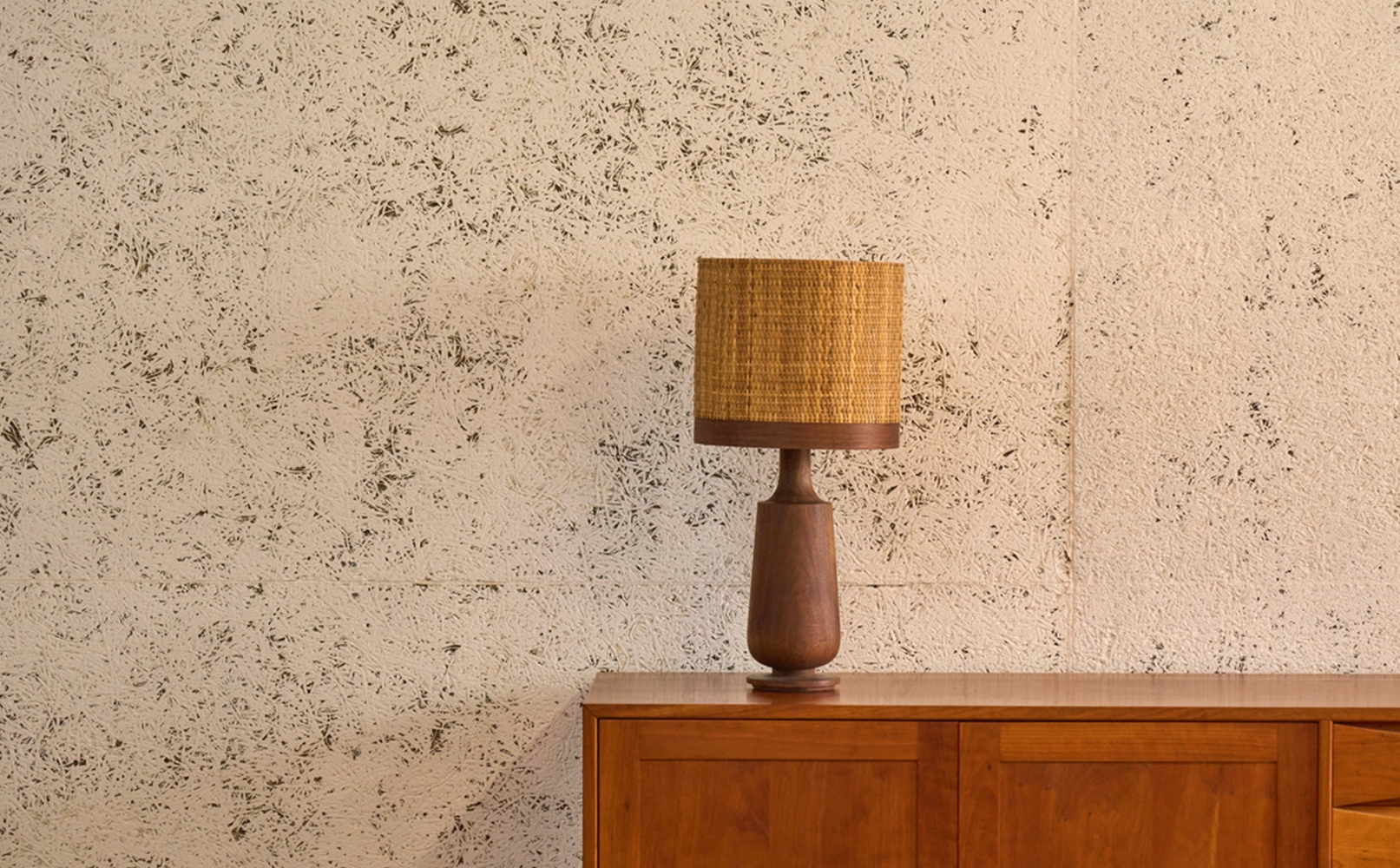 異素材が調和する繊細で温かみのあるシルエット、ラタンシェードからこぼれる琥珀色の静寂が点灯時はもちろん、消灯時もオブジェのように空間を演出します。